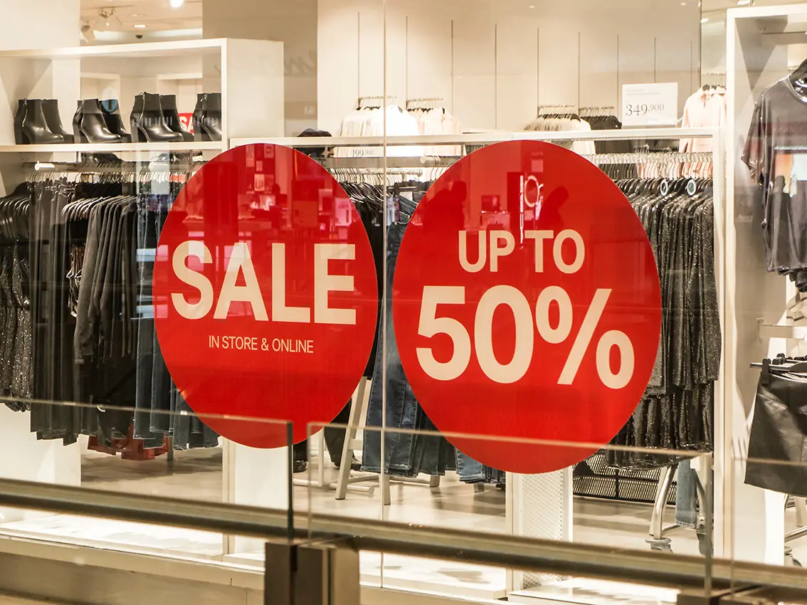 Folia wielkoformatowa wyklejana od wewnętrznej strony witryny sklepowej.